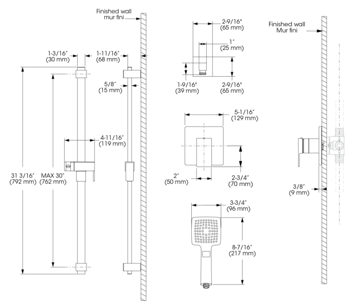 - Hand Shower Flow : Maximum flow of 5.7 L/min (1.5 gpm) at 80 psi