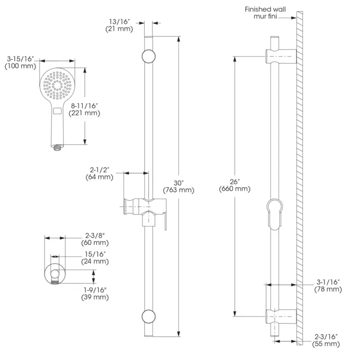 - Douche à main - Débit maximal : 5,7 L/min (1,5 gpm) à 80 psi
