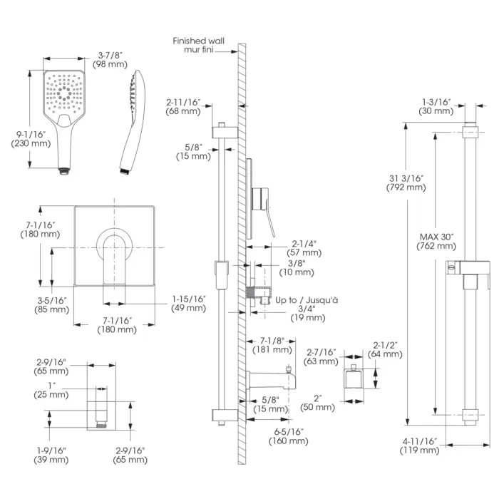 - Douche à main - Débit : Maximum flow of 6.8 L/min (1.8 gpm) at 80 psi