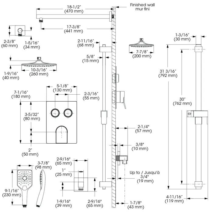- Pomme de douche - Débit : Débit maximal de 6,8 L/min (1,8 gpm) à 80 psi