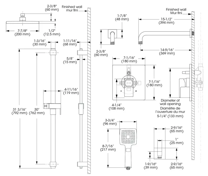 - Pomme de douche - Débit : Débit maximal de 5,7 L/min (1,5 gpm) à 80 psi