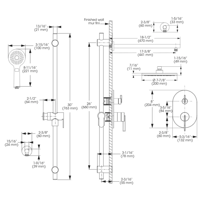 - Douche à main - Débit : Maximum flow of 5,7 L/min (1,5 gpm) at 80 psi