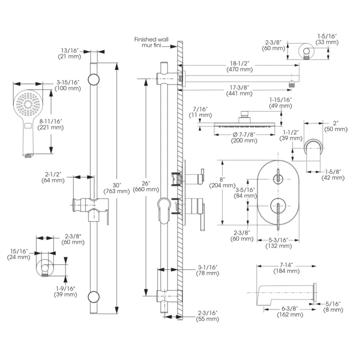 Kit de bain/douche - garniture