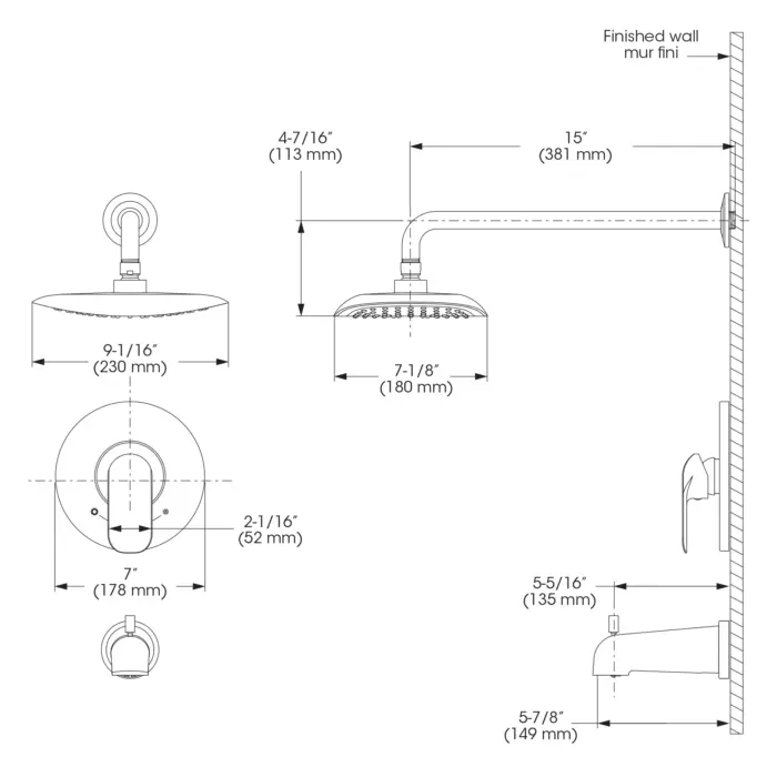 - Pomme de douche - Débit : Débit maximal de 6,8 L/min (1,8 gpm) à 80 psi