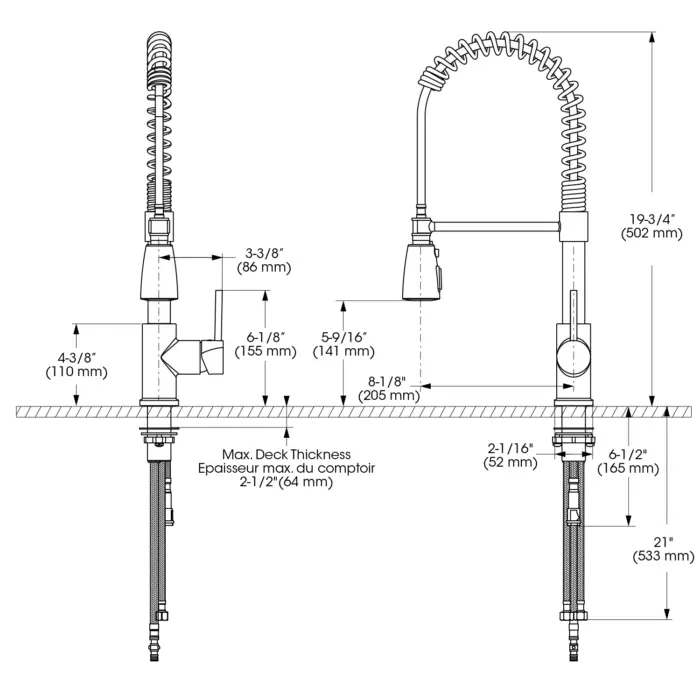 - Bec - Débit : Débit maximal de 6,8 L/min (1,8 gpm) à 60 psi