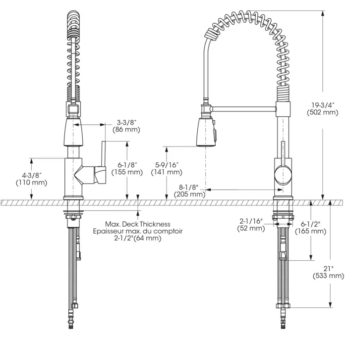 - Bec - Débit : Débit maximal de 6,8 L/min (1,8 gpm) à 60 psi