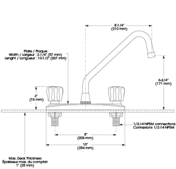 - Bec - Débit : Débit maximal de 8,3 L/min (2,2 gpm) à 60 psi