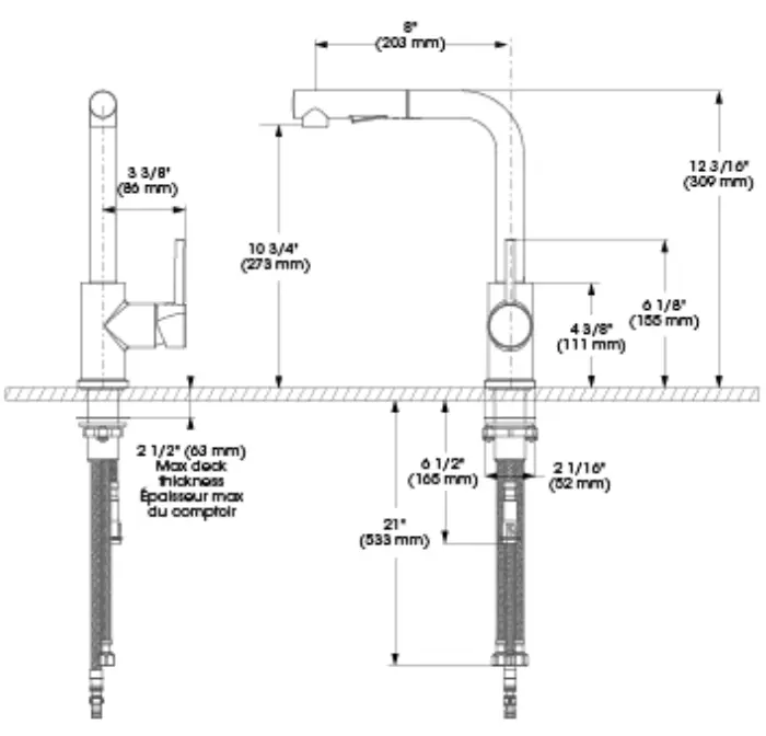 - Bec - Débit : Débit maximal de 6,8 L/min (1,8 gpm) à 60 psi
