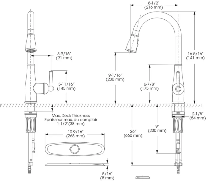 - Bec - Débit : Débit maximal de 6,8 L/min (1,8 gpm) à 60 psi