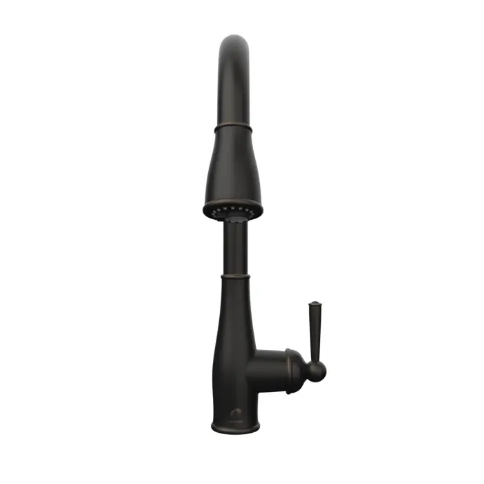 - Bec pivotant intégrant douchette amovible avec bouton «lame d’eau», bouton inverseur de jets (concentré, diffus)