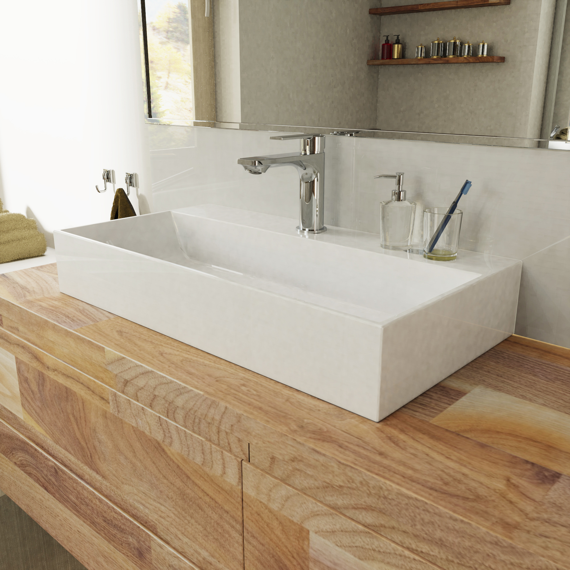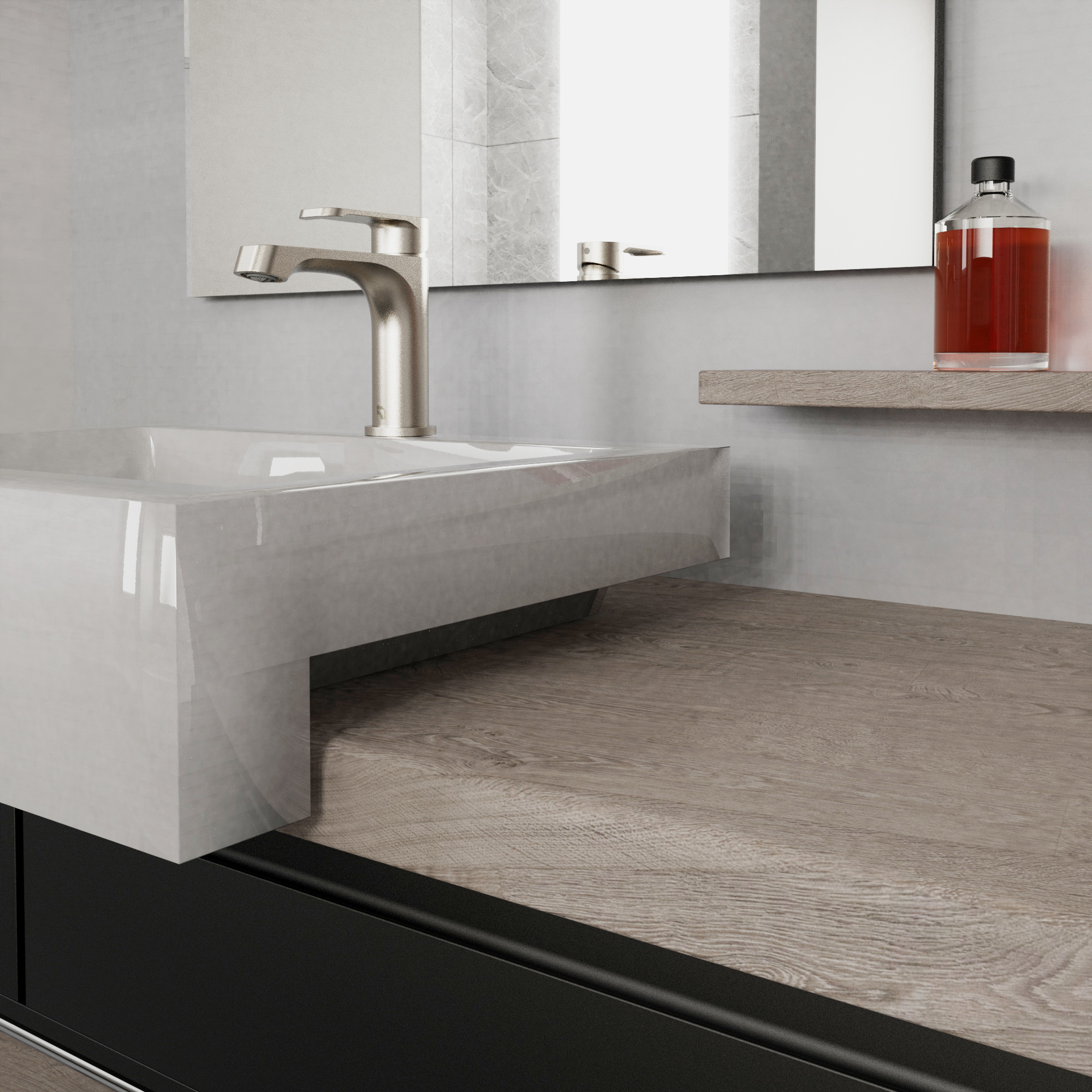 Une collection angulaire et carrée pour la salle de bain.