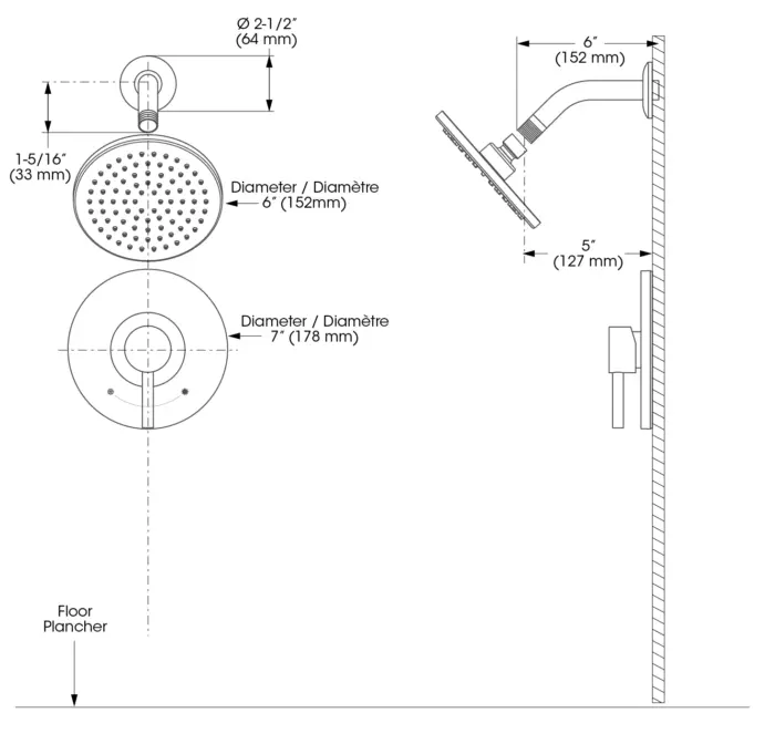 - Pomme de douche - Débit : Débit maximal de 5,7 L/min (1,5 gpm) à 80 psi