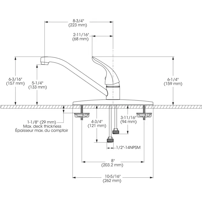 - Bec - Débit : Débit maximal de 6,8 L/min (1,8 gpm) à 60 psi