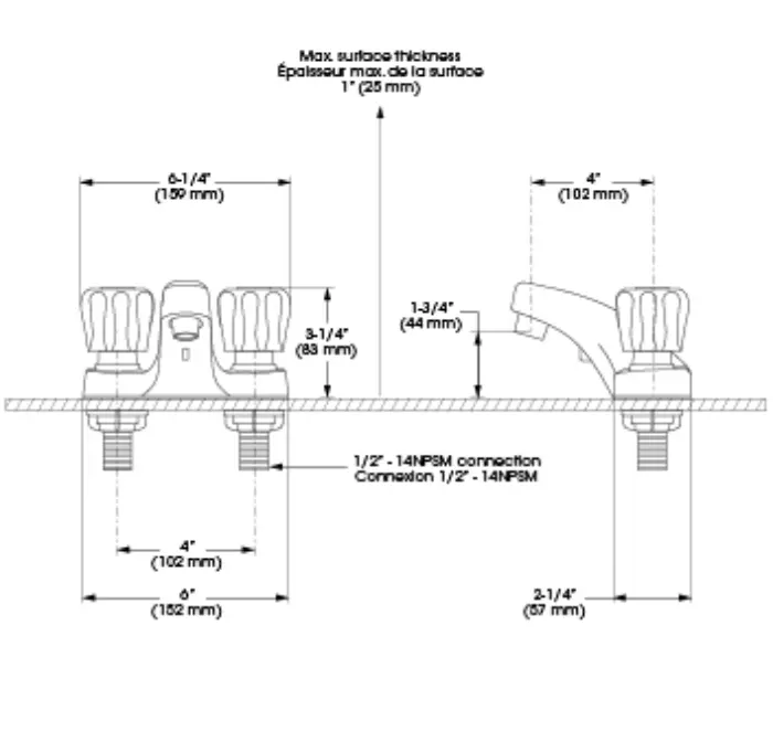 - Bec - Débit : Débit maximal de 5,7 L/min (1,5 gpm) à 60 psi