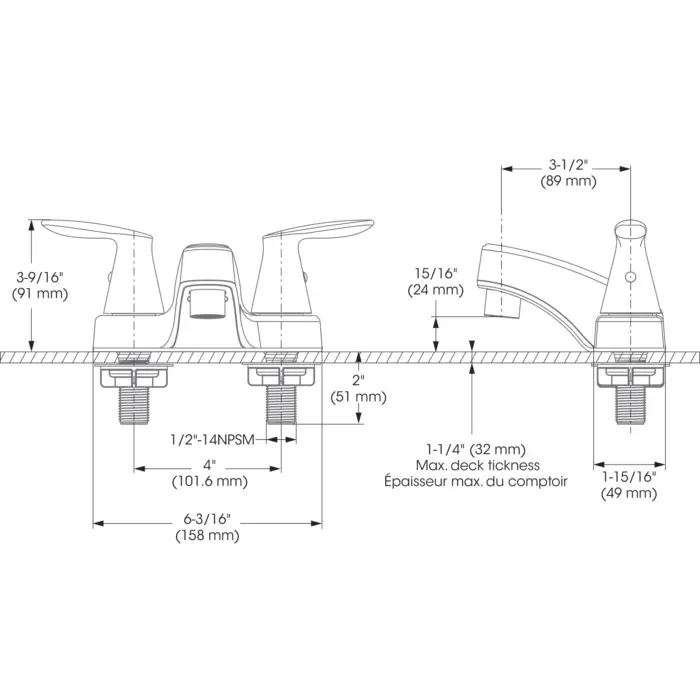 - Bec - Débit : Débit maximal de 3,0 L/min (1,0 gpm) à 60 psi