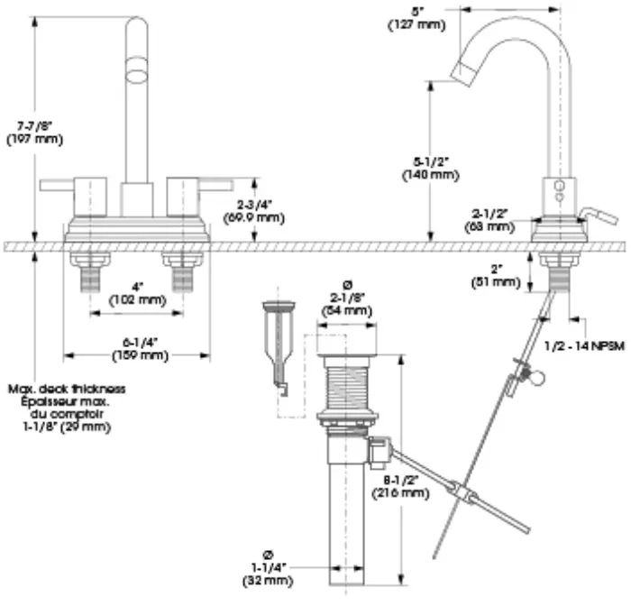 - Bec - Débit : Débit maximal de 5,7 L/min (1,5 gpm) à 60 psi
