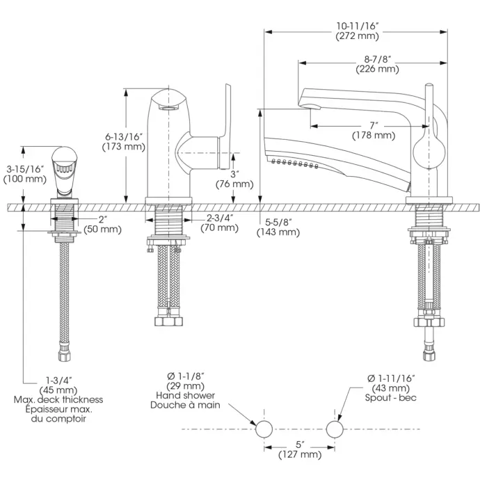 - Hand Shower Flow : Débit maximal de 6,8 L/min (1,8 gpm) à 80 psi