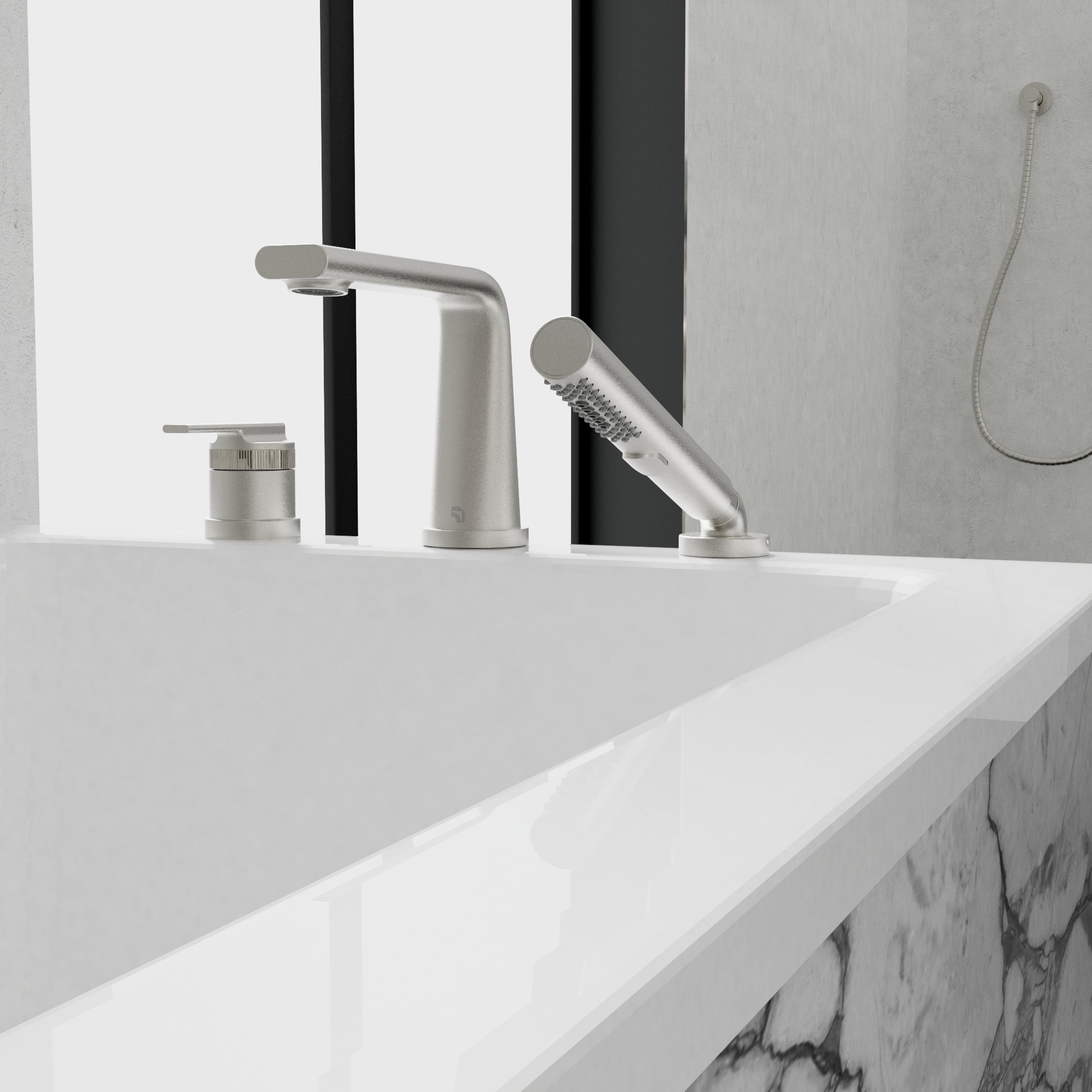 The SYMBIO collection captures the same architectural silhouette and sculptural precision, reimagined for a complete and cohesive bathroom offering. From the bold, elevated profile to the finely detailed handle accents, every element is designed to express modern luxury through balance, purity, and performance.