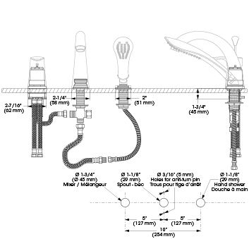 - Hand Shower Flow : Maximum flow of 9.5 L/min (2.5 gpm) at 80 psi