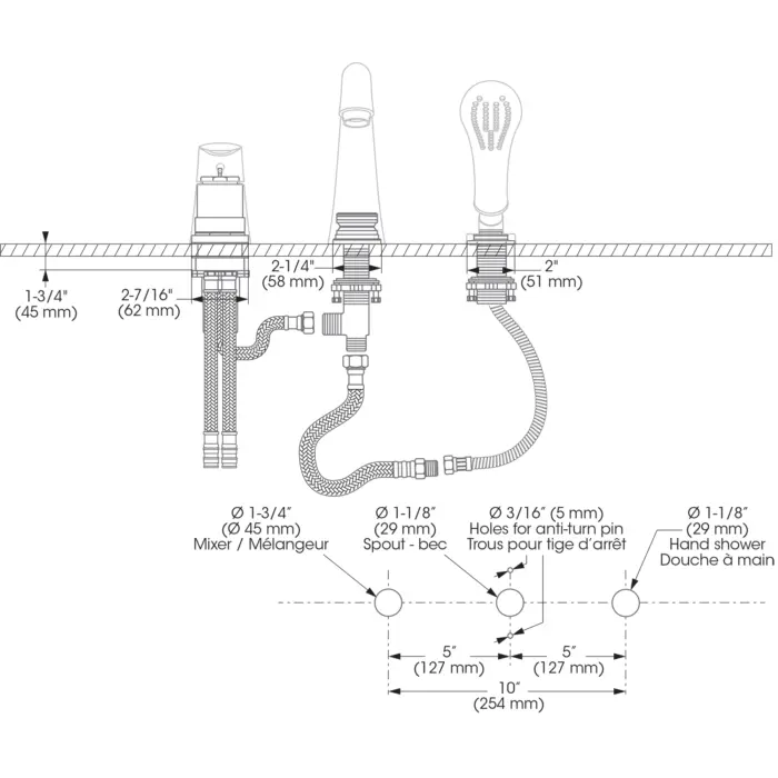 - Spout Flow : Maximum flow of 22.5 L/min (6.0 gpm) at 45 psi