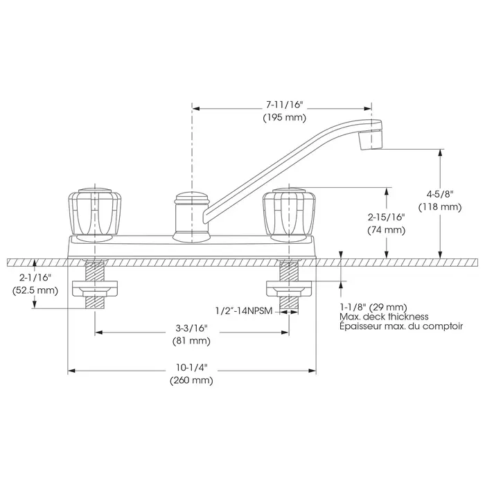 - Spout Flow : Maximum flow of 6.8 L/min (1.8 gpm) at 60 psi