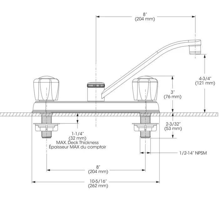 - Spout Flow : Maximum flow of 6.8 L/min (1.8 gpm) at 60 psi
