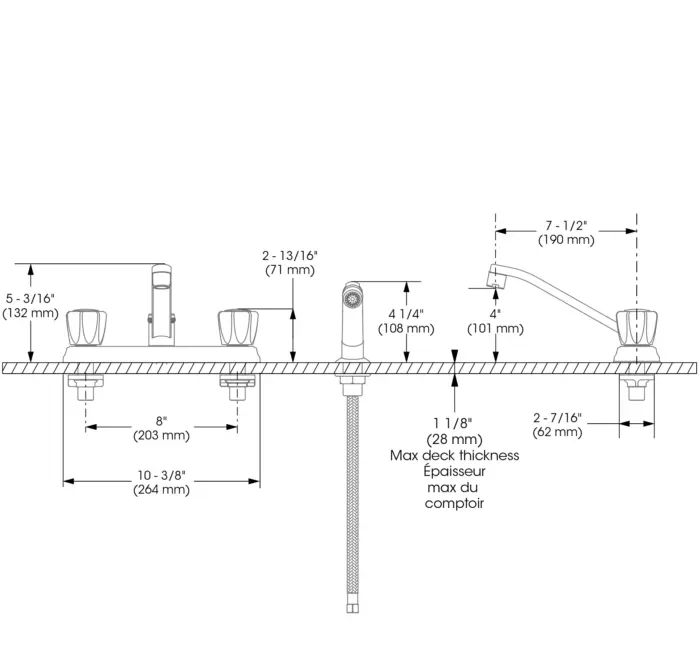 - Spout Flow : Maximum flow of 6.8 L/min (1.8 gpm) at 60 psi