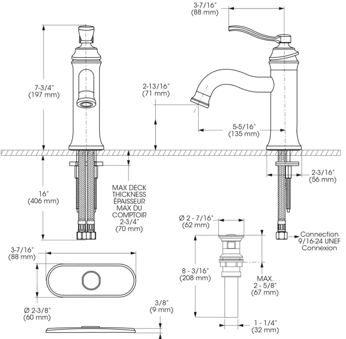 - Spout Flow : Maximum flow of 4.5 L/min (1.2 gpm) at 60 psi