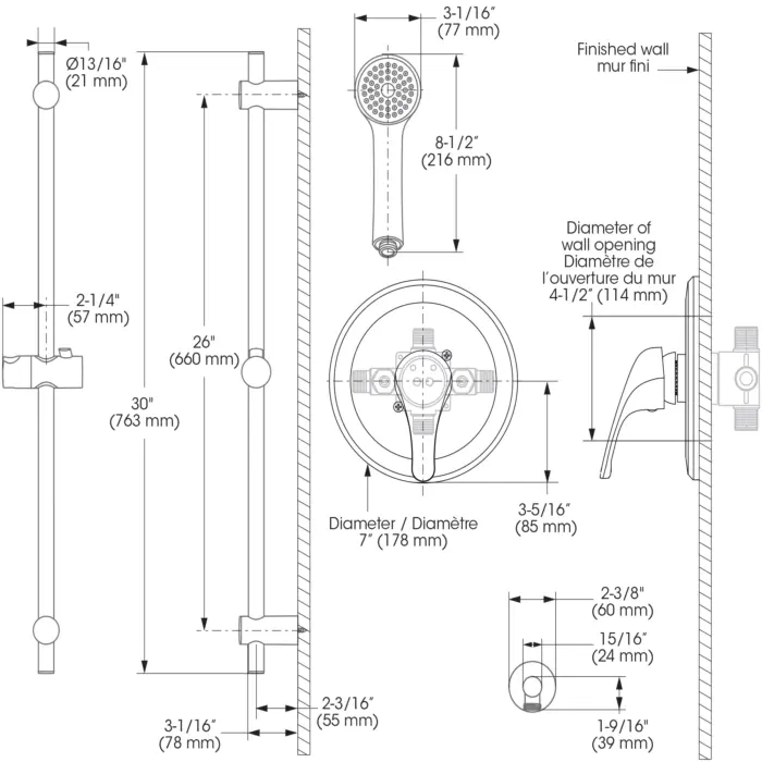 - Hand Shower Flow : Débit maximal de 6,8 L/min (1,8 gpm) à 80 psi