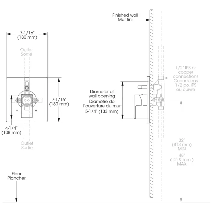- Valve Direction : Face plate with diverter button