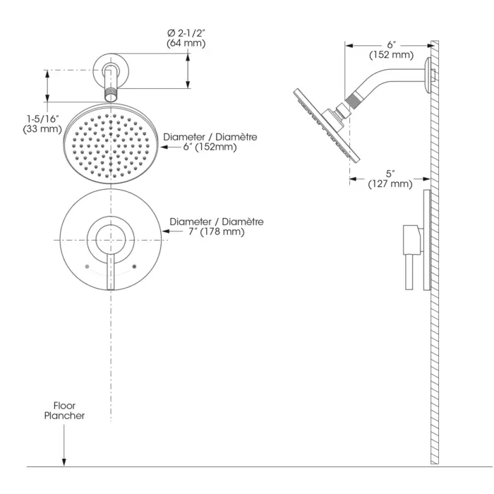 - Shower Head Flow : Maximum flow of 6.8 L/min (1.8 gpm) at 80 psi