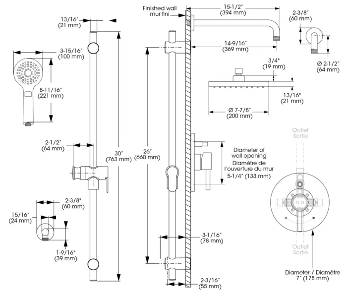 - Pomme de douche - Débit : Débit maximal de 6,8 L/min (1,8 gpm) à 80 psi
