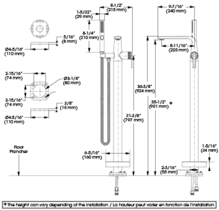 - Douche à main - Débit maximal de 6,6 L/min (1,75 gpm) à 80 psi
