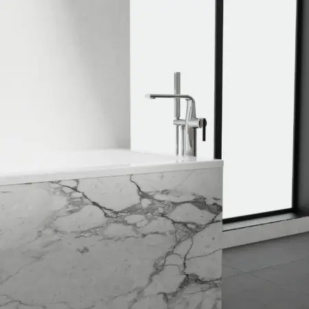 La collection SYMBIO reprend la même silhouette architecturale et la même précision sculpturale, réinterprétées pour offrir une salle de bain complète et parfaitement cohérente. Du profil audacieux et élancé aux accents finement travaillés des poignées, chaque élément est pensé pour exprimer le luxe moderne à travers l’équilibre, la pureté et la performance.