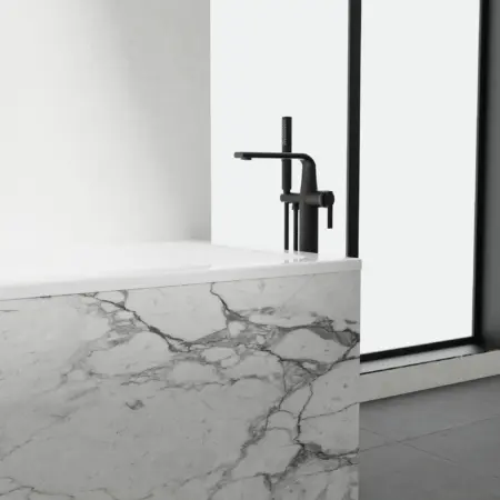 La collection SYMBIO reprend la même silhouette architecturale et la même précision sculpturale, réinterprétées pour offrir une salle de bain complète et parfaitement cohérente. Du profil audacieux et élancé aux accents finement travaillés des poignées, chaque élément est pensé pour exprimer le luxe moderne à travers l’équilibre, la pureté et la performance.