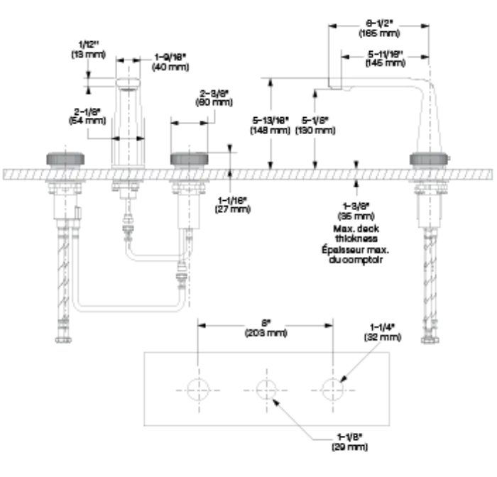 - Bec : Débit maximal de 5,7 L/min (1,5 gpm) à 60 psi (ecologiq)